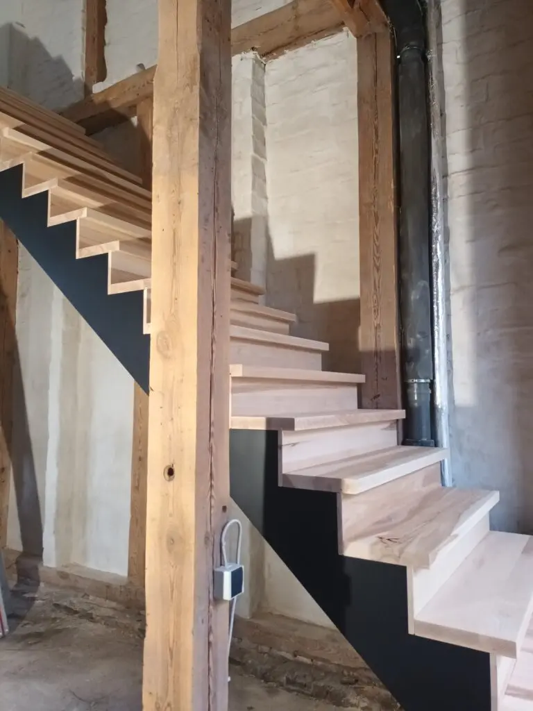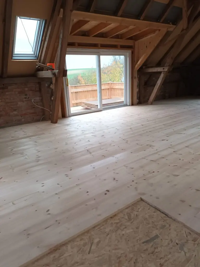 Ausbau des Dachgeschosses einer Scheune zu einem sommerlichen Wohnraum, inklusive der Integration eines Treppenaufgangs im nicht ausgebauten Teil. Eine große Herausforderung war es das sommerliche Wohnen im Dachgeschoss unterzubringen und den Treppenaufgang in den nicht ausgebauten Bereich geschickt zu integrieren.