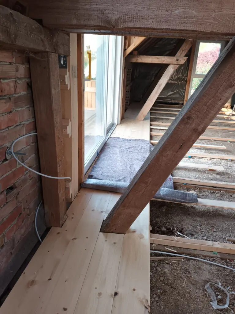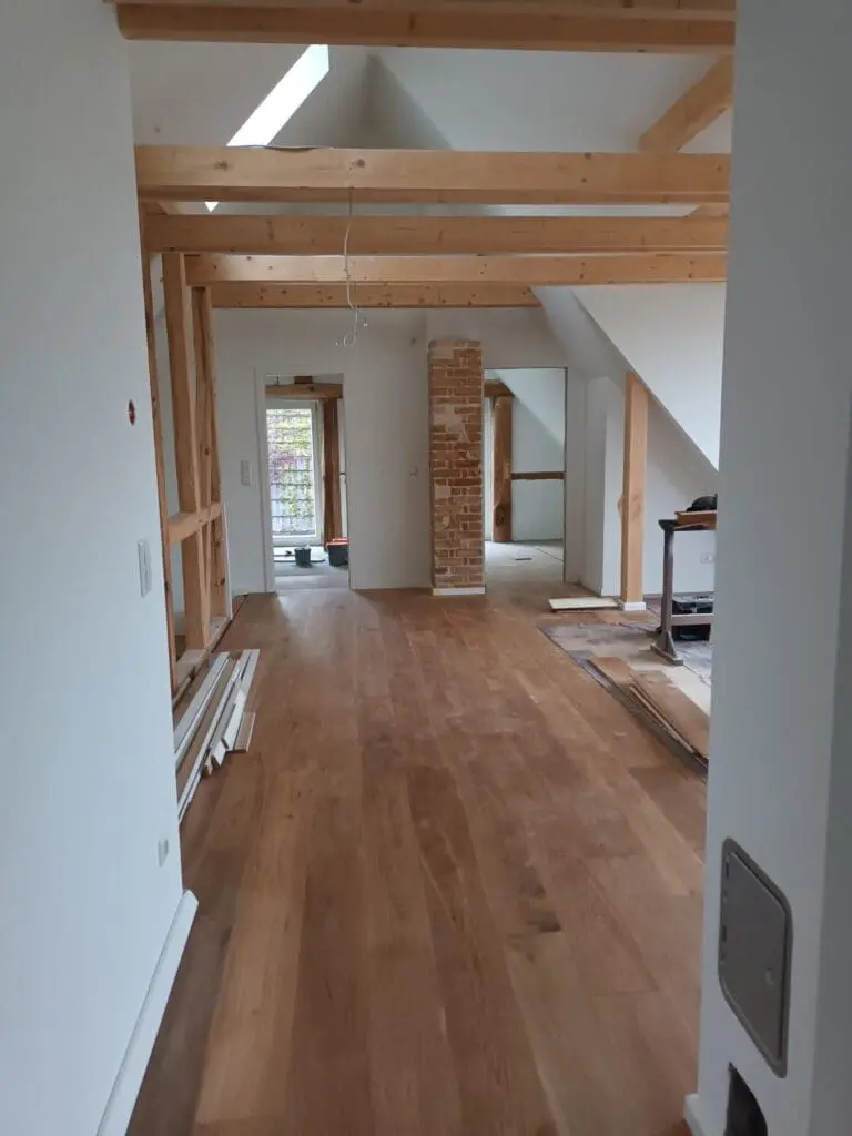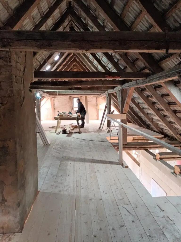 Das Projekt steht kurz vor der Fertigstellung. Die Bäder werden derzeit noch gefliest, und in Kürze werden die Möbel aufgebaut. Die Kunden freuen sich auf das Ergebnis, da das neue Wohnhaus sowohl die historische Substanz respektiert als auch alle modernen Anforderungen erfüllt.