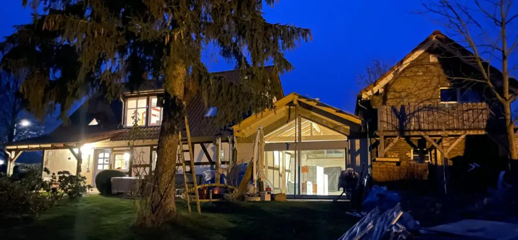 Das gelungene Zusammenspiel zwischen dem Bestandswohnhaus und dem neuen Anbau, um eine harmonische Gesamtwirkung zu erzielen.